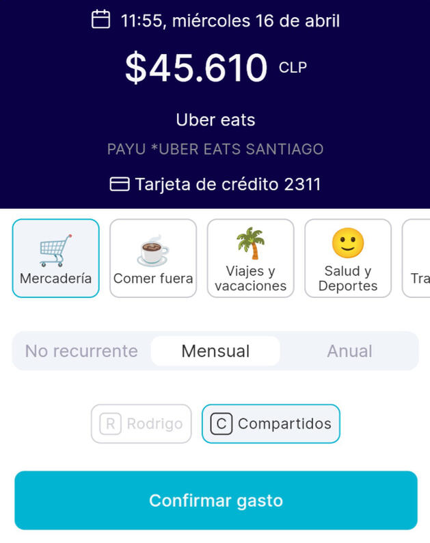 No.En Kuanto nos hemos tomado muy en serio el factor tiempo a la hora de llevar el control de los gastos. Sabemos que registrar y categorizar cada una de las 100+ transacciones que haces al mes es tedioso y desmotiva el hábito.La mayoría de las personas repite mucho los mismos comercios y destinatarios, y probablemente te encuentras en la misma situación. Kuanto aprenderá de tus categorizaciones previas y notarás a partir del segundo mes que la mayoría viene pre-clasificado con mucha exactitud.Puedes usar la recomendación Kuanto, editarla fácilmente o incluso fijarla 🔒 para que nunca más la app te vuelva a preguntar por ese gasto. Amarás todo esto.